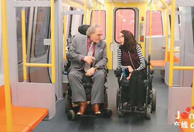 “現在,平生第一次,我不再需要別人幫我進到車廂里了。這種獨立性對我來講至關重要。”馬薩諸塞州波士頓地鐵老乘客懷特先生坐著輪椅在車廂里溜達了一圈,對地鐵新車充滿期待。當地時間4月3日,在美國波士頓舉行的橙線地鐵模型車首次展出活動上,美國民眾感受了來自中國的地鐵車廂。更寬敞、美觀,設計更加人性化,讓美國民眾為之點贊。“車廂內外側都有專門的按鈕,可以讓坐在輪椅里的人在上、下車的時候直接啟動車廂底部的專用輪椅車平板,通行完全無障礙。”懷特先生說。