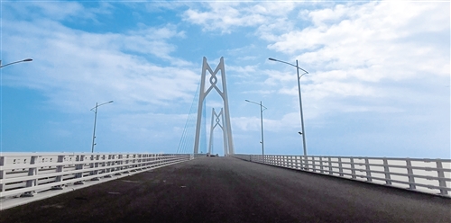 港珠澳大橋主體工程包含22.9公里主體跨海橋梁及6.7公里的沉管隧道。當記者坐上汽車,從珠海洪灣這端駛上大橋,感受到的是雙向六車道的平坦通暢。這座前后都望不到頭的大橋上,建有3段斜拉橋,分別是“風(fēng)帆”“海豚”“中國結(jié)”造型,寓意深遠。
