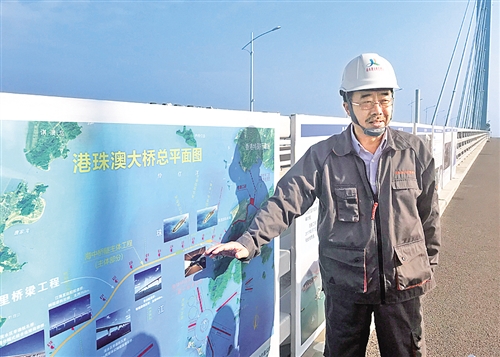 港珠澳大橋管理局總工程師蘇權(quán)科介紹港珠澳大橋的規(guī)劃圖。(佘惠敏 攝)