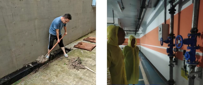 近日,涿州地區遭受持續強降雨侵襲,中船國際工程下屬華北公司緊急研究防汛應急方案,部署防汛工作,對涿州產業園住宅項目低洼地帶、采光井、排水溝等重點區域進行全面檢查,爭分奪秒抽排積水,清除雜草、淤泥及各類雜物,排除隱患。連日來,相關人員始終堅守崗位,攻堅克難,聚焦住宅區域污水泵運維保障、外圍排水溝疏通等環節,全力確保各項防汛工作有序推進。