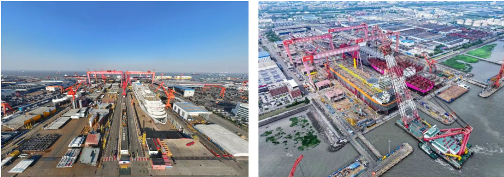 2021年,國產首艘大型郵輪在外高橋造船實現全船貫通,第二艘國產大型郵輪項目訂單生效。2022年,外高橋造船通過開展“奮戰120天”攻堅活動全力追趕首艘郵輪建造進度。第二艘大型郵輪正式開工,國產大型郵輪邁入“雙輪”建造時代。2023年11月4日,國產首艘大型郵輪“愛達·魔都號”歷時八年科研攻關、五年設計建造順利命名交付,“愛達·魔都號”投入運營至今已完成140余個商業航次,市場反響熱烈。在首制船設計建造中,外高橋造船也初步建立起“1+100+1500”(1家總裝企業+100家總包商+1500家供應商)的郵輪生態圈,打造出產業鏈主管理能力。