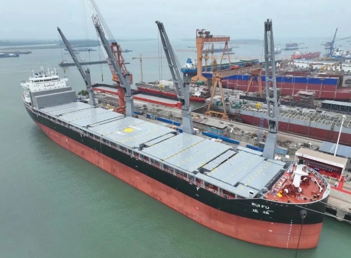 日前,中船集團上船院研發(fā)設(shè)計62000噸重吊多用途船OCTOPUS 62 “明融”號、“瑞福”號命名交付。